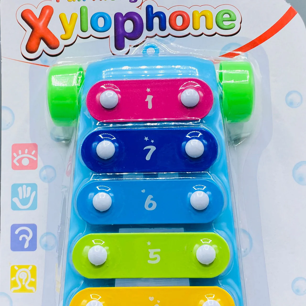 As your child pulls the xylophone along, they’ll love hearing the cheerful sounds it makes while developing: