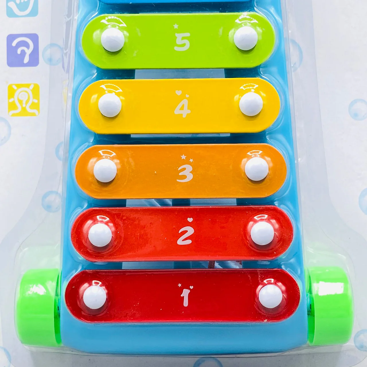 – 8 brightly colored metal keys with clear tones