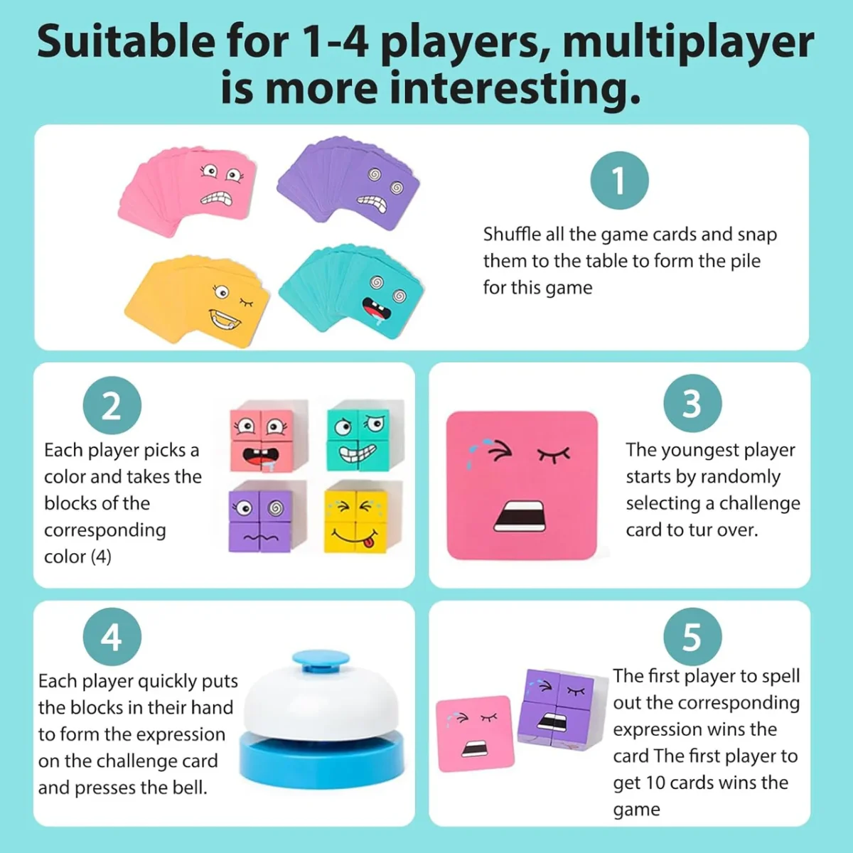 - Colorful and Resilient Construction: Showcasing bright, premium-quality cubes and durable expression cards, this activity withstands extensive repeated use.