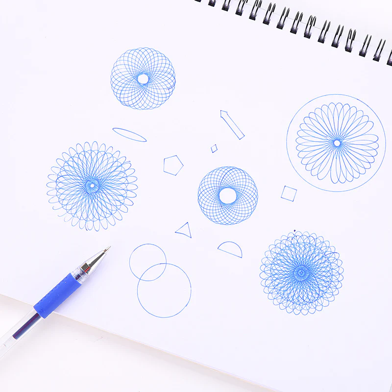 With its innovative design, our Spirograph Geometric Ruler allows children to explore their creativity and imagination through a fun and engaging drawing experience. The included small circle can be placed inside the ring, and with a pen placed in one of the holes of the circle, as it moves, the pen will trace out a curve, allowing children to create intricate and mesmerizing designs.